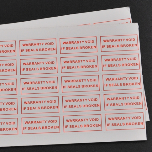 Гарантійні наклейки або як їх ще називають: індикаторні пломби, одноразові пломби, гарантійки, контрольні стікери, запобігають несанкціонованому розкриттю обладнання (саморуйнується при спробі їх відклеювання, або залишає металізований слід-індикатор), тобто назад їх приклеїти немає ніякої можливості. Тому такі пломби-наліпки є певним індикаторами, що засвідчуює цілісність упаковки або товару. Окрім цього, такі контрольні наліпки включають в себе інформацію, що ідентифікує товар та може містити нумерацію, штрих-код, тощо. Сайт прораховує стандартну нумеріцію при ширині матеріалу 1000мм. Порізка на розір замовника прораховується окремо. Ми пропонуємо приємні ціни разом з високою якістю та швидкістю виконання Вашого замовлення в потрібному накладі. За більш детальною інформацією звертайтесь до наших менеджерів.